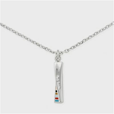 Paul Smith ポールスミスダブルバープレートトップマルチカラーロゴ刻印ペンダントネックレスシルバーブロックトップチェーンアクセサリーユニセックス メンズ レディースPENDANT NECKLACE MULTI PATTERN