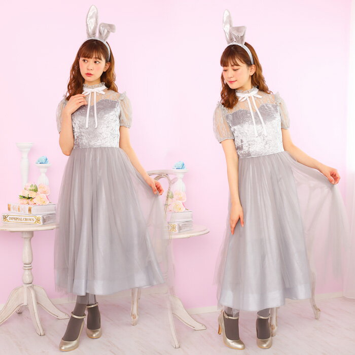 ≪Costume/Halloween≫クラシカル ソフトバニーライトグレーの大人っぽいバニーのロング丈コスチューム。